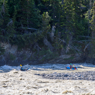 While not typically paddled as part of the Tatshenshini multiday trip, launching on the day-stretch from "Bear Camp" helped us close the loop and added some fun whitewater. The first few miles of the river meanders through some scenic bends before it reaches a confluence with the Blanchard River where the whitewater starts in earnest. This section gets a III-IV rating and many of the rapids have specific names given by the local rafting outfits. At high flows, the Upper was pushy and continuous but still had eddies in all the right places. Swims could be long, and it is worth noting that this section of Tat is a half step more difficult than the "Canyon Section" below the traditional multiday put-in. We found a few gravel bar camping options near the confluence with the Takhanne and more should be available at lower water levels.