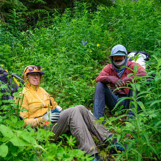 From the confluence of the O'Connor and the south-flowing tributary, an excellent game trail helped facilitate the steep climb out of the valley. The trail fizzled out and the bushwhacking ensued. Where possible, we stuck to the tree cover as it provided better walking with less underbrush. We figured we would eventually encounter signs of the old airstrip depicted on topo maps, but any obvious signs have been reclaimed by dense underbrush. Sticking close to where we could see a faint break in the vegetation on satellite imagery, we did our best to follow the historic road. The "road" was initially easier to lose than it was to find, but it became more defined as it ascended out of the valley toward the alpine.